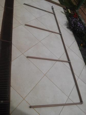 Se podemos equalizar a altura do volume de água entre dois recipientes quaisquer utilizando uma mangueira cheia de água, mesmo que o meio da mangueira esteja acima do nível máximo de qualquer dos recipientes, então certamente isso seria possível com mais de dois recipientes. Fiz então uma experiência com mangueiras e cotovelos 90°, e obtive sucesso. Fiz então um aparato hidráulico utilizando canos de PVC 3/4" para garantir agilidade no processo de equalização das alturas de líquido, como pode ser observado nas figuras abaixo.